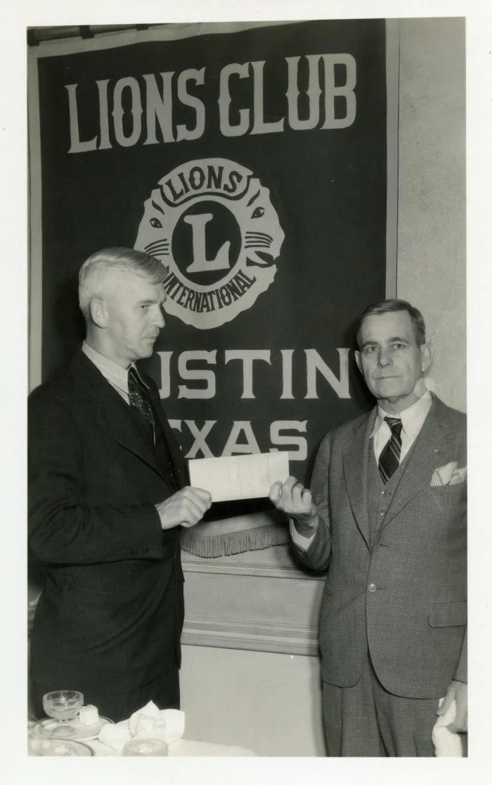 This is a photo of Guiton Morgan, Austin’s City Manager, accepting the deed for Lions Municipal Golf Course from John H. Tobin of Austin Lions Club on April 1, 1937. Tobin was Lions Club president from 1919-1920!